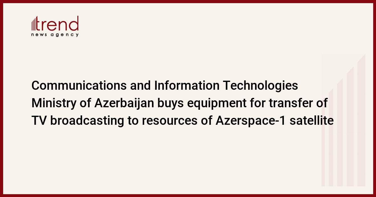 "Teleradio" Production Association (PA) of the Ministry of Communications and Information Technologies of Azerbaijan has announced a poll of interests to purchase the equipment for the transfer of local and foreign television and radio programs to the resources of the Azerspace/Africasat-1a satellite, the Teleradio PA told Trend on Thursday.