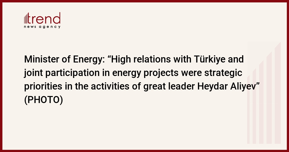Minister Parviz Shahbazov said that national leader Heydar Aliyev saw Türkiye as a reliable bridge in Azerbaijan's independent development and access to the world: “The Great Leader showed determination in the question of Türkiye`s participation in the main energy projects of Azerbaijan and on the fact that energy resources transportation routes pass through Türkiye. As a connoisseur of politics, Heydar Aliyev was convinced that Türkiye`s participation is important for the realization of energy security projects such as Baku-Tbilisi-Ceyhan and Baku-Tbilisi-Erzurum in the complex geopolitical space, in the condition of regional conflicts and conflicts of interest.”