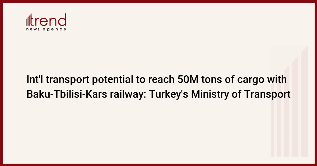 The international transport potential with the Baku-Tbilisi-Kars railway (BTK) will reach 50 million tons of cargo per year, Turkey's Ministry of Transport, Shipping and Communications told Trend Oct.29.