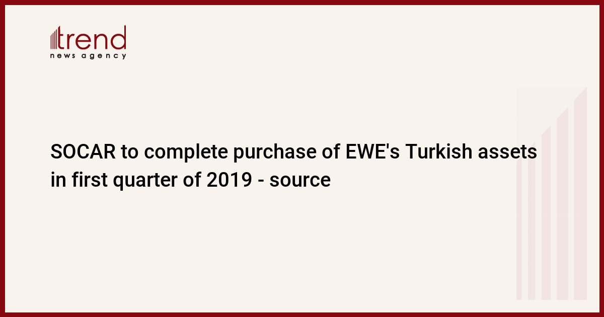 Azerbaijan’s state oil company SOCAR hopes to complete the purchase of Turkish assets of the German energy giant EWE in the first quarter of 2019, a source close to the negotiations said, Trend reports citing Turkish media.