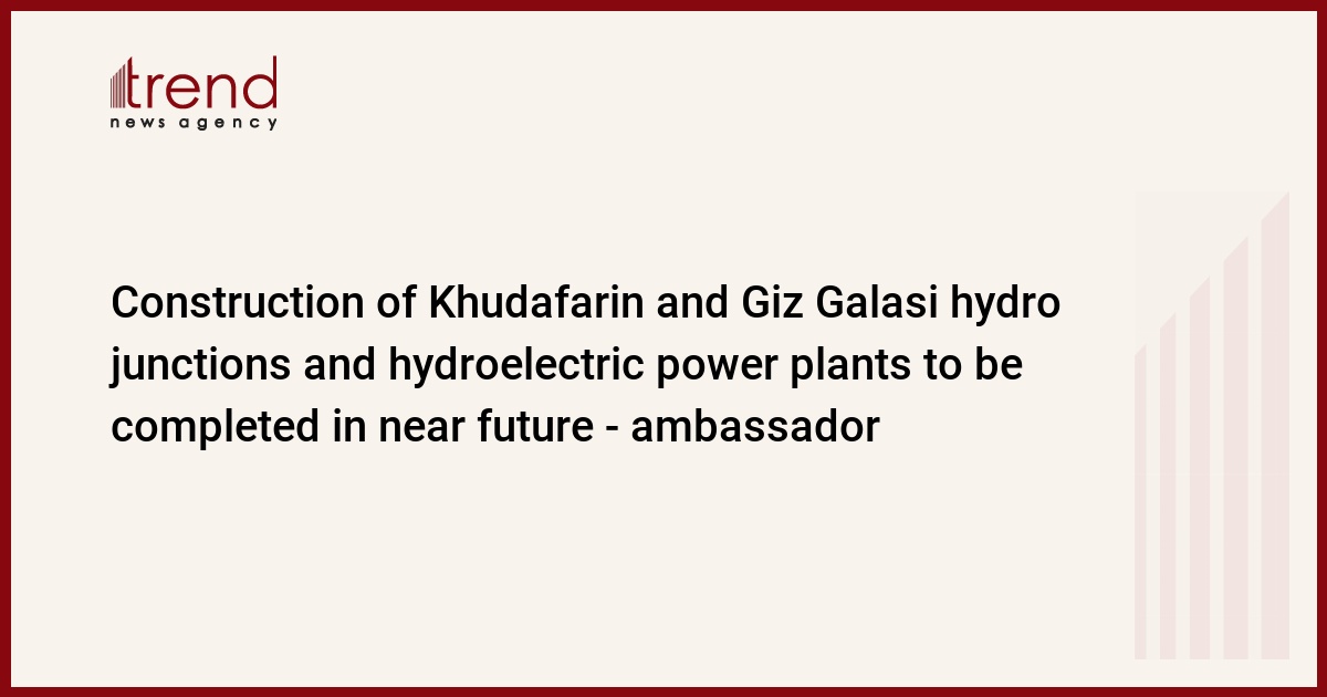BAKU, Azerbaijan, April 24. I believe that the construction of the of the Khudafarin and Giz Galasi hydro junctions and hydroelectric power plants will be completed in the near future, Azerbaijani Ambassador to Iran Ali Alizade told reporters, Trend reports.