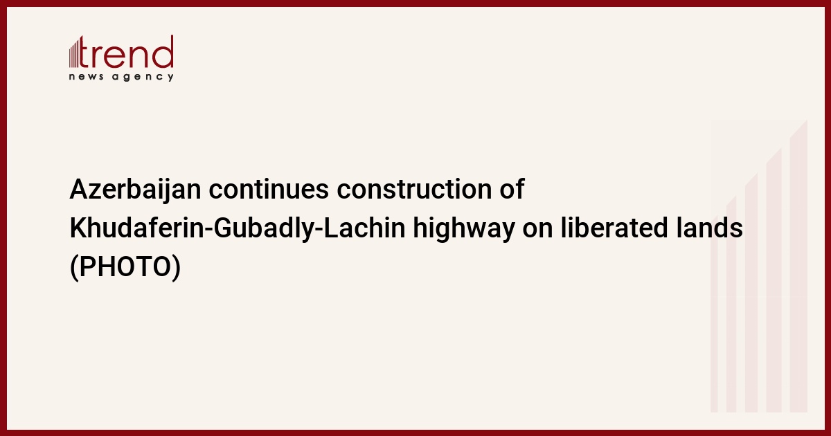The length of Khudaferin-Gubadly-Lachin road, starting from the section of Hajigabul-Horadiz-Agband-Zangazur highway and passing near the Khudaferin reservoir, will be 56,4 kilometers. Construction of a new 14-kilometer highway from Khanlyg settlement to Gubadly city is also underway.