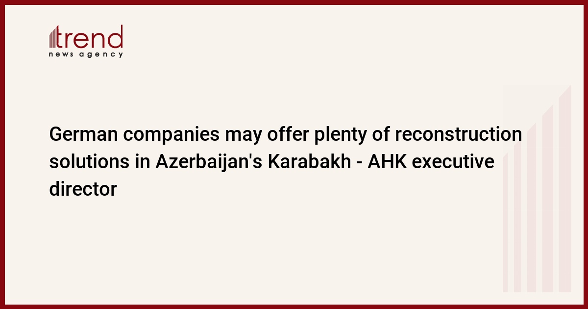 BAKU, Azerbaijan, May 10. German companies could offer a wide range of solutions for the reconstruction of Azerbaijan’s Karabakh region starting with local infrastructure, water management, and electricity, Tobias Baumann, AHK Executive Director, told Trend.
