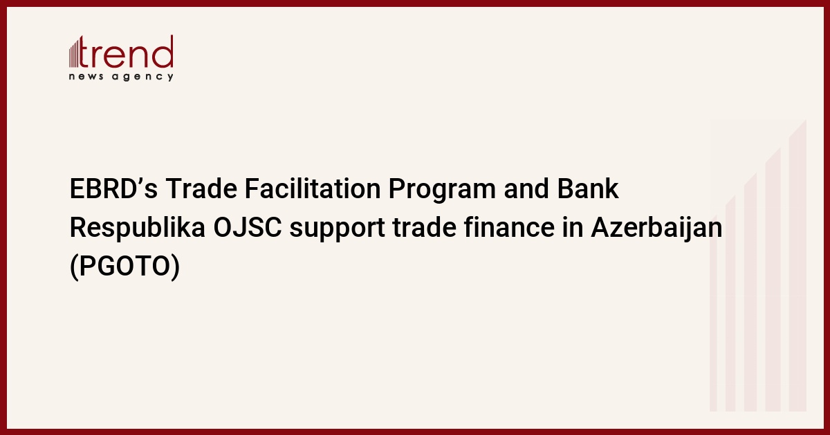 The European Bank for Reconstruction and Development (EBRD) is extending the trade finance guarantee facility to Bank Respublika OJSC aimed at supporting small and medium-sized enterprises (SMEs) in Azerbaijan. The agreement is set to boost the trade of Azerbaijani businesses, and better integrate them into international markets.