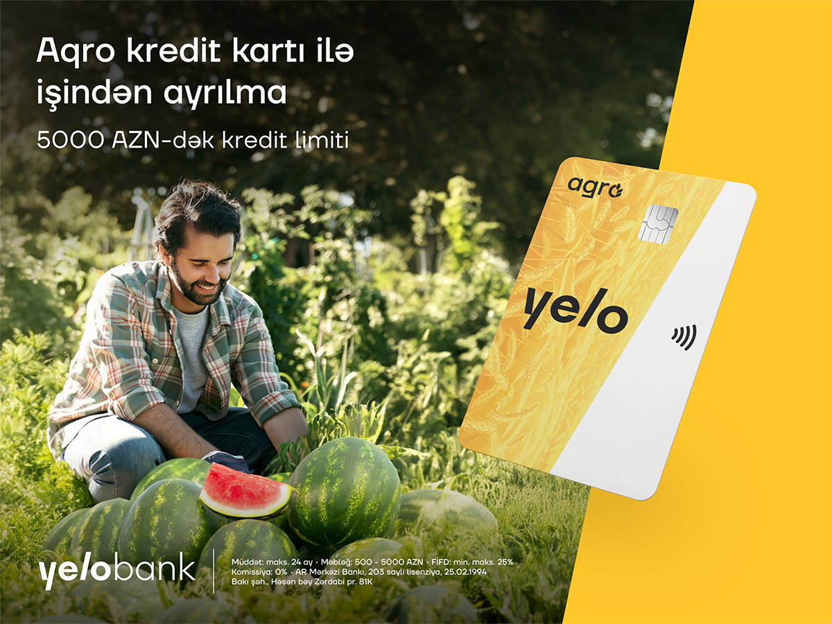 BAKU, Azerbaijan, August 1. Yelo Bank offers farmers a credit card with excellent conditions for daily and emergency expenses. The Bank introduces an agro-credit card for legal entities and individual entrepreneurs engaged in agriculture, with the following benefits: