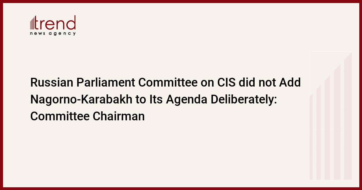 Russian, Moscow, 14 March / corr. Trend R. Agayev/ The Committee of Russian parliament on CIS and for the Work with Compatriots who held hearings in the parliament on the settlement of the conflicts in CIS (Commonwealth of Independent States) and on appeals made to Russia to recognize the independence of Abkhazia, South Ossetia and the Trans-Dniester Region did not add Nagorno-Karabakh conflict into its agenda deliberately. The chairman of the Committee Aleksey Ostrovskiy said.
