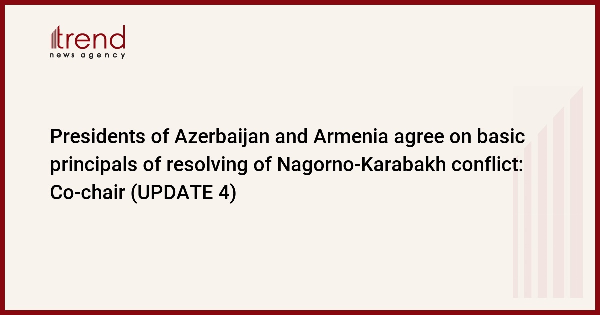 Presidents of Azerbaijan and Armenia have agreed on basic principles of resolving of Nagorno-Karabakh conflict, OSCE Minsk Group American Co-chair Mettew Bryza said to journalists in Prague on May 7.