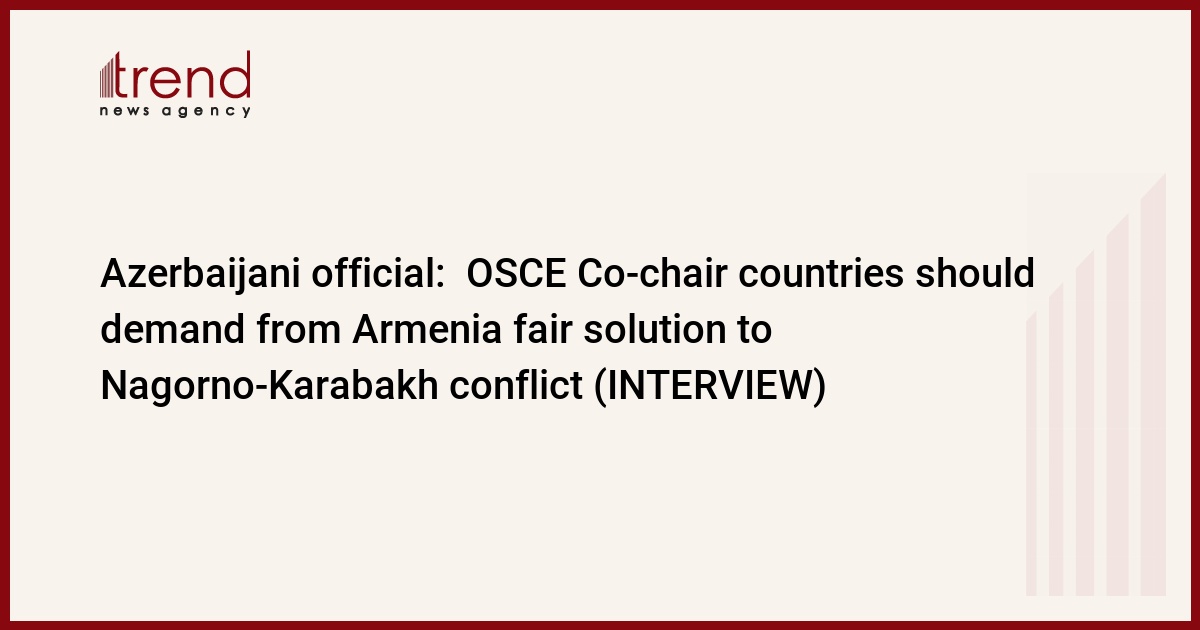 Azerbaijani official: OSCE Co-chair countries should demand from Armenia fair solution to Nagorno-Karabakh conflict (INTERVIEW)