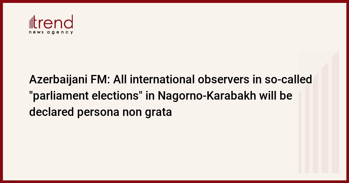 Azerbaijan will declare all international observers in the so-called "parliament elections" in the Nagorno-Karabakh persona non grata.