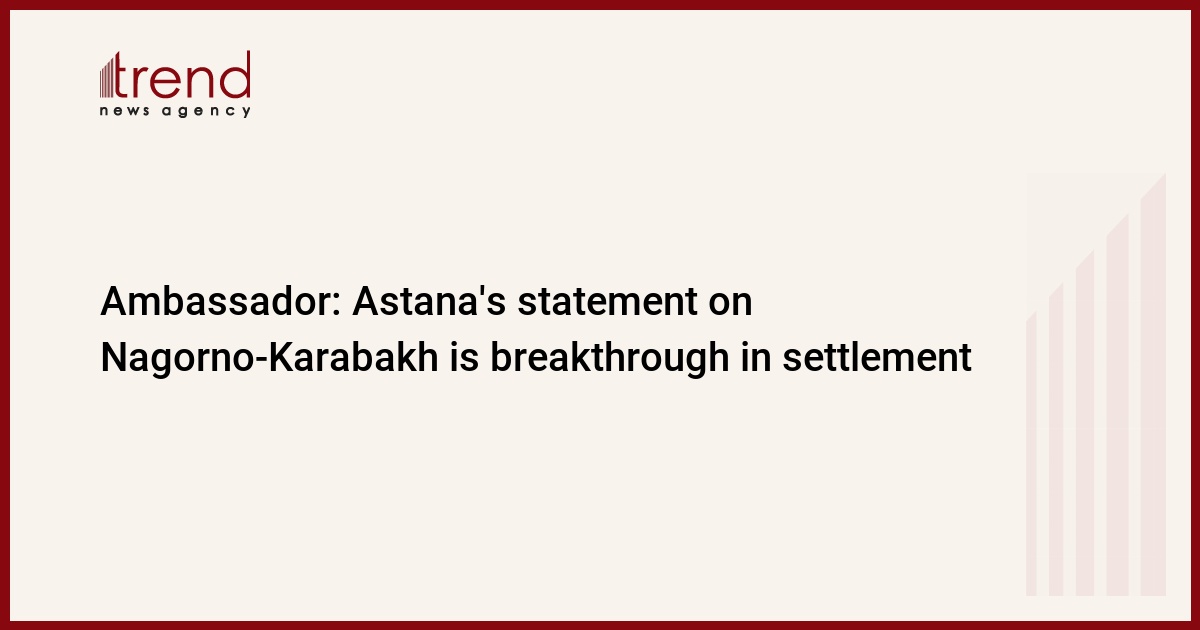 Kazakh Ambassador to Azerbaijan Serik Primbetov assesses the joint statement adopted by the presidents of the parties to the conflict - Armenia and Azerbaijan - as well as the heads of the delegations of the OSCE Minsk Group co-chairing countries at the Astana summit as progress in resolving the Nagorno-Karabakh conflict.