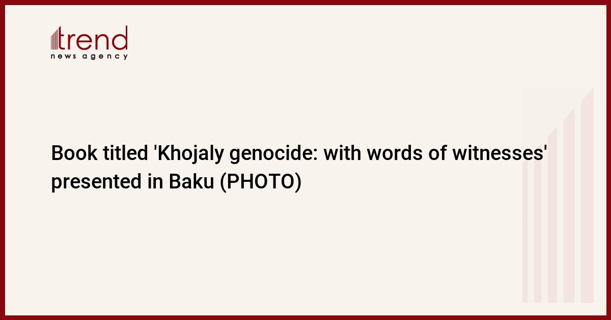 A ceremony was conducted to present a book titled "Khojaly genocide: with words of witnesses". The book by MP Ganira Pashayeva and a member of the 'Azerbaijani Community of Nagorno-Karabakh' Public Union Havva Mammadova was published in Azerbaijani and Turkish languages.