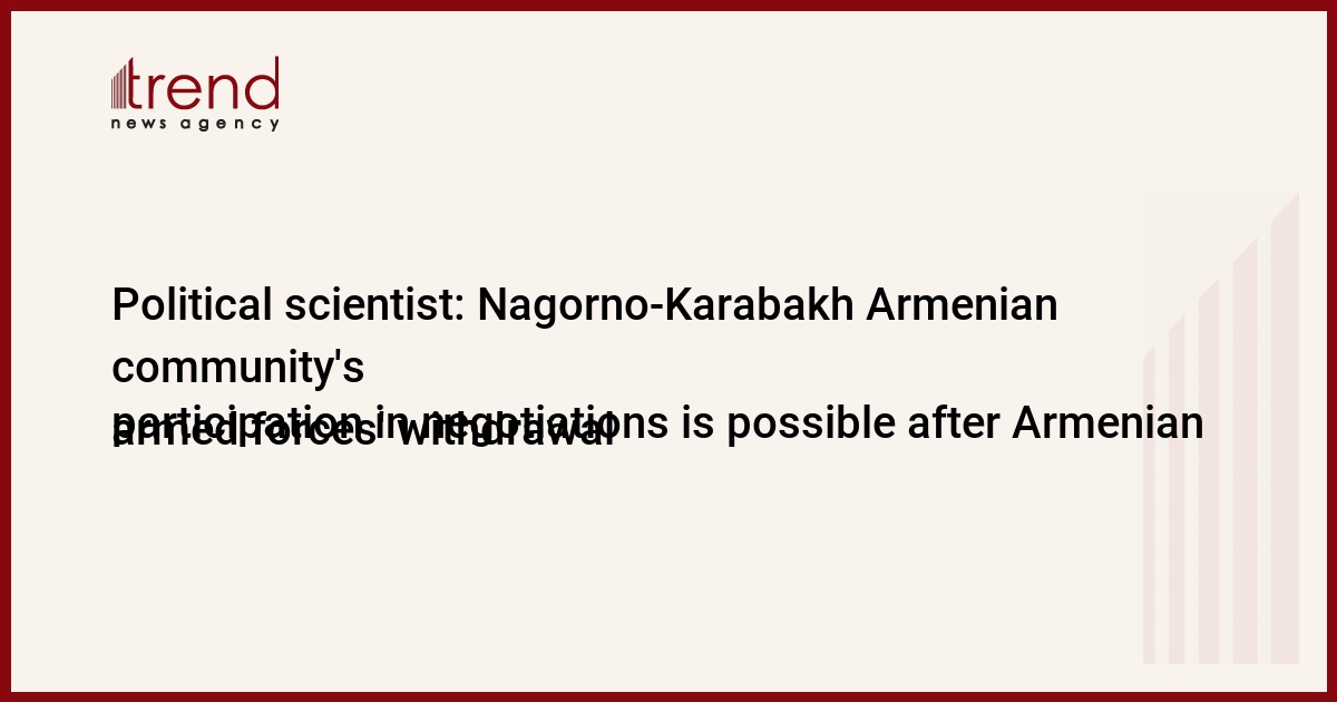 The participation of the Nagorno-Karabakh Armenian community in negotiations can only be ensured after Armenian armed forces leave Azerbaijan, Azerbaijani political scientist, MP Rasim Musabeyov has said today commenting on the statement made by the head of the self-proclaimed "Nagorno Karabakh Republic" Bako Saakian to the Echo of Moscow radio station about the willingness of the Armenian community to participate in the negotiation process.