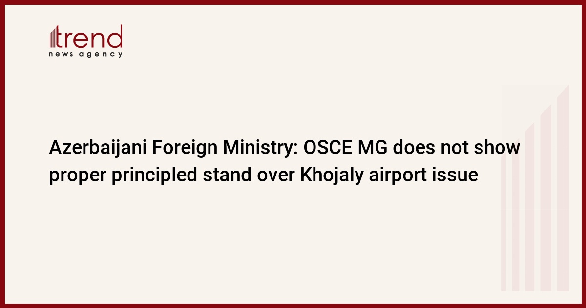 The OSCE Minsk Group does not show a proper principle stand over the issue of the opening of Khojaly airport, Azerbaijani Deputy Foreign Minister Araz Azimov believes.