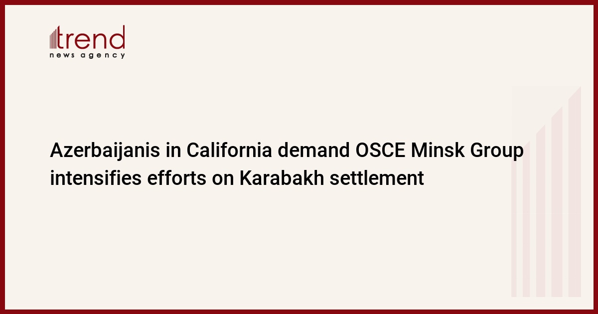 Representatives of the Azerbaijani community of the US state of California demanded that the OSCE Minsk Group co-chairs intensify efforts to settle the Armenian-Azerbaijani Nagorno-Karabakh conflict, achieve the withdrawal of Armenian forces from occupied Azerbaijani territories and return of IDPs to their homes, the Consulate General of Azerbaijan in Los Angeles told Trend July 9.