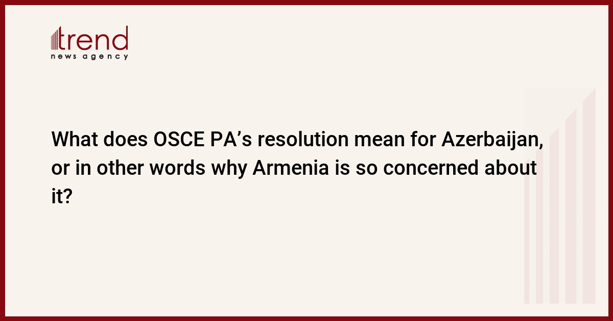 As Foreign Affairs Ministry declares, provisions included in this resolution should be considered as guiding principles by the co-chairs of OSCE Minsk Group who should abide by the Helsinki Final Act, and Armenian side must be demanded to observe them. If there are sanctions for conflict in Ukraine, then Armenia should also be subjected to similar harsh measures because of occupying Azerbaijani lands. This resolution serves as a favourable legal framework in this regard. All that remains is its execution.