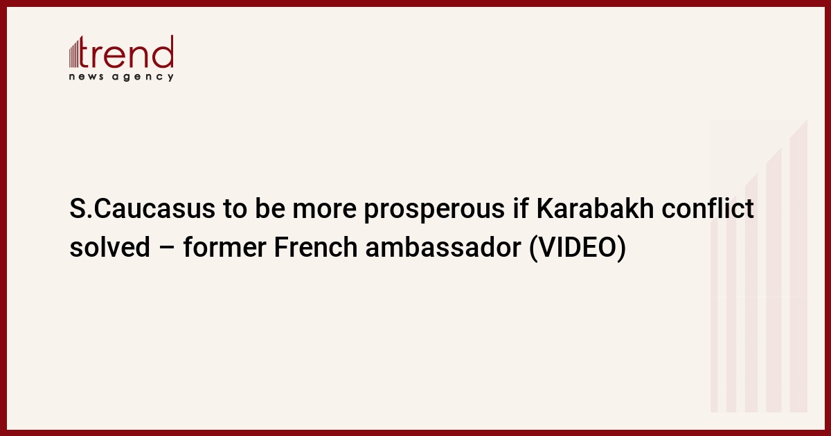 The South Caucasus region will be more prosperous if the Armenian-Azerbaijani Nagorno-Karabakh conflict is solved, France's former ambassador to Azerbaijan Pascal Meunier said, participating Trend Agency's "This Week in Focus" program.