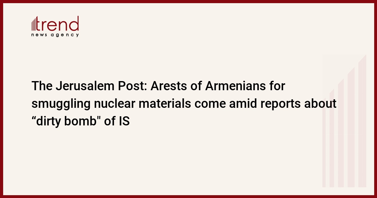 Maayan Jaffe-Hoffman stresses in his article, that these arrests come amid reports by intelligence officials that "Islamic State" (IS) and other terrorist groups are trying to obtain materials to build a "dirty bomb", which they could explode in Europe, the United States or Israel.