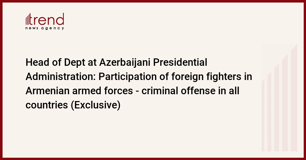 The participation of Armenian militants on the side of armed groups is a terrorist activity, Fuad Akhundov, head of the Public and Political Affairs Department of the Presidential Administration told Trend.