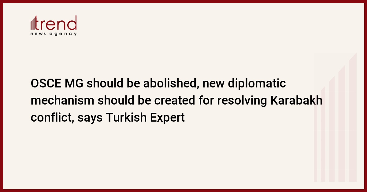 “The OSCE Minsk Group, which is non-independent, must be abolished and a new diplomatic mechanism, in which Turkey must also participate, must be created instead of it,” the expert said. “Turkey and Azerbaijan are one nation, two states."