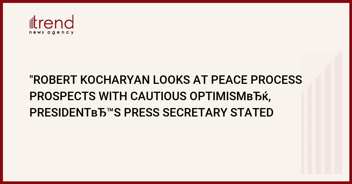 (Меdiamax) The press secretary of the Armenian President Victor Sogomonyan stated today in Erevan, that “Robert Kocharyan looks at the prospects of the negotiation process on the Karabakh settlement with cautious optimism”.