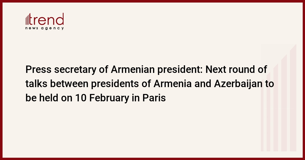 According to the preliminary accord, the next round of talks between presidents of Armenia and Azerbaijan will take place on 10 February in Paris, the press secretary of the Armenian president Victor Sogomonyan stated today, Trend reports citing Mediamax.