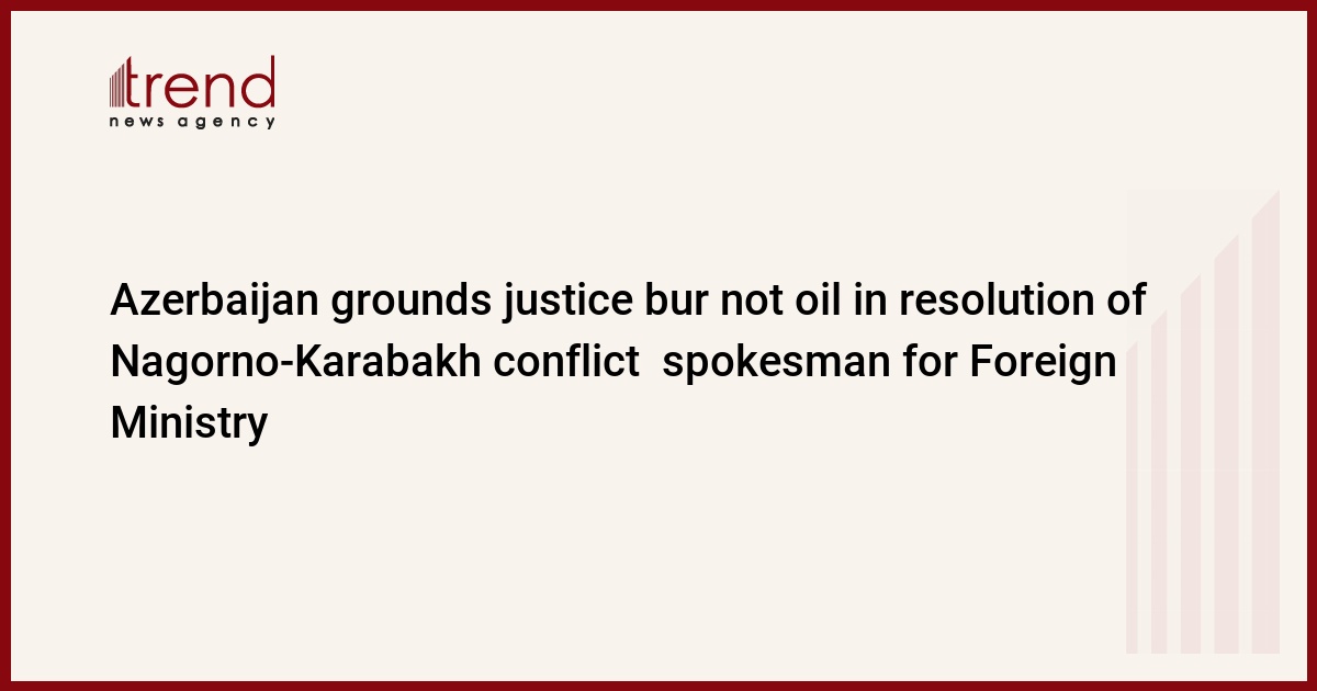 Azerbaijan grounds justice, but not oil, in the fair resolution of the Nagorno-Karabakh conflict with in the framework of the international law and maintenance of the territorial integrity of the country, spokesman for the Ministry underlined.