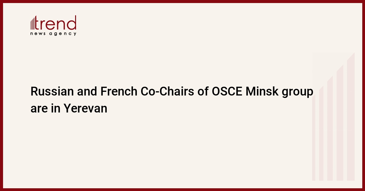The Chairmen of OSCE MG from Russia and France, Yuri Merzliakov and Bernard Fassier, have arrived in Yerevan, the acting press-secretary of RA FM, Vladimir Karapetyan, told ArmInfo. According to him, the Cochairmen will meet today, at 11:00 AM, with the RA Foreign Minister, Vardan Oskanyan, Trend reports citing ArmIinfo.