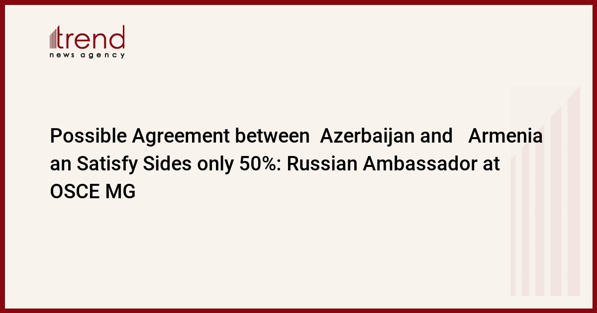 Azerbaijan, Baku / corr. Trend A.Ismayilova / Russian Ambassador Yuriy Merzlyakov, a co-chair of the OSCE Minsk Group which is involved in the resolution of the Nagorno-Karabakh conflict, stated on 6 June in Baku possible agreement between Azerbaijan and Armenia could satisfy the sides only by 50%.