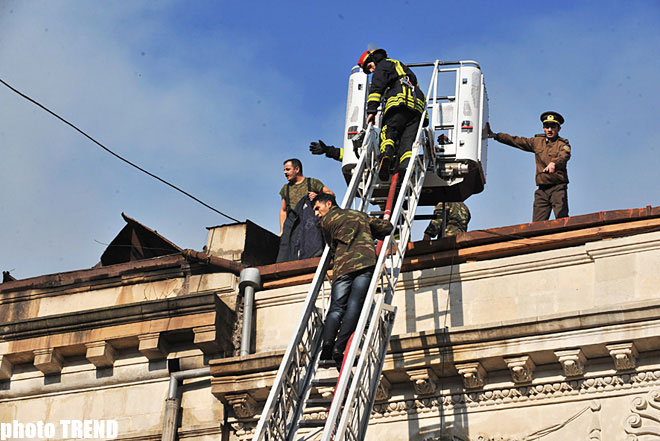 The roof caught fire at about 10 a.m. (Baku time).