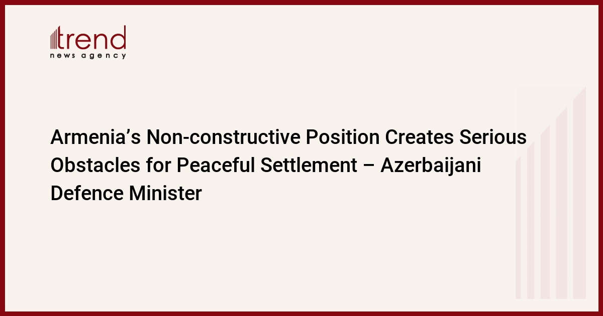Azerbaijan, Baku, 12 February / Trend corr E. Huseynli / Armenia's non-constructive position creates serious obstacles for the peaceful settling of the conflict, the Azerbaijani Defence Minister Colonel-General Safar Abiyev said on 12 February when receiving the US Ambassador Anne Derse.