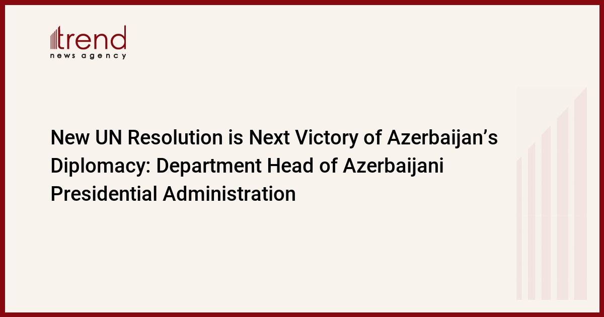 Azerbaijan, Baku, 16 March / Trend / Official Baku assesses the UN General Assembly's adoption of the Resolution on Situation in Occupied Territories of Azerbaijan as strengthening of Azerbaijan's position in the international arena, said the Head of the Foreign Relations Department of Azerbaijani Presidential Administration, Novruz Mammadov, in his interview with AzTV channel. He described the new UN Resolution as Azerbaijan's victory.