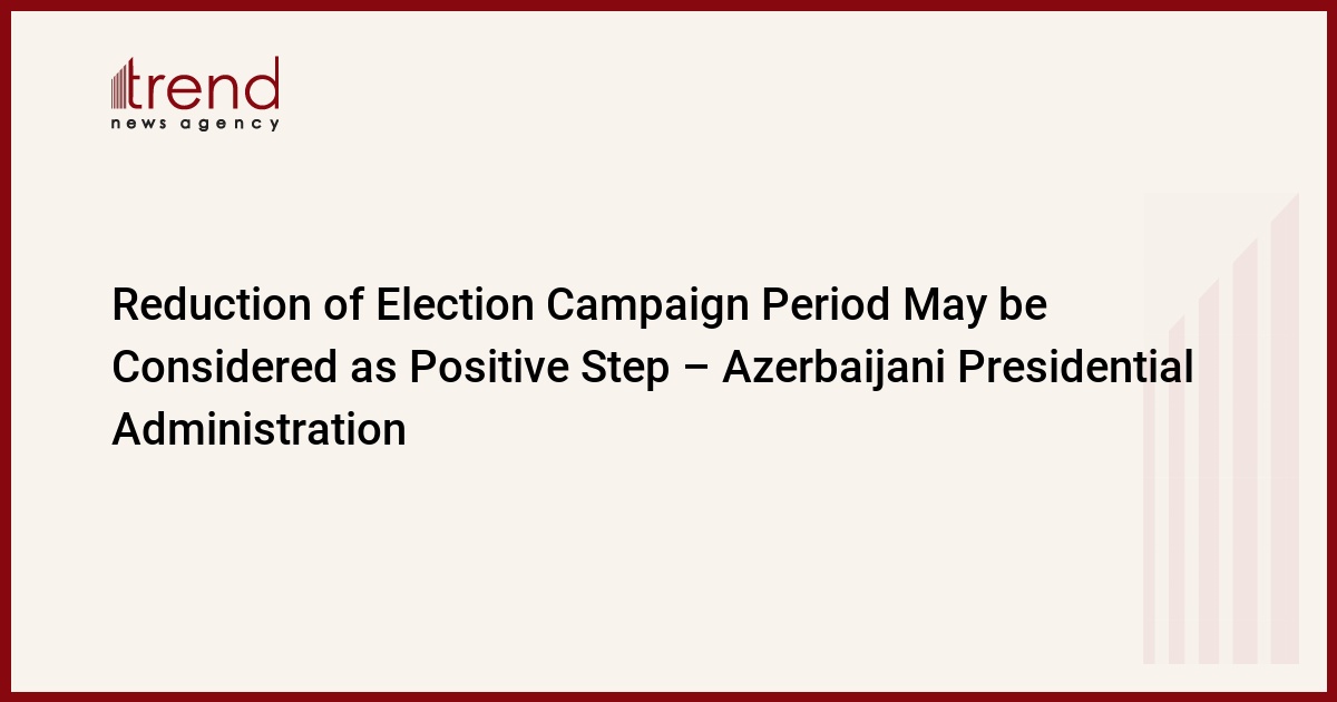 Azerbaijan, Baku, 25 April / Тrend News corr J. Babayeva/ "Reduction of the election campaign period in Azerbaijan may be considered as a positive step towards the democratic development," Elnur Aslanov, head of Department on Political Analysis and Information Supply at the Azerbaijani Presidential Administration, stated.