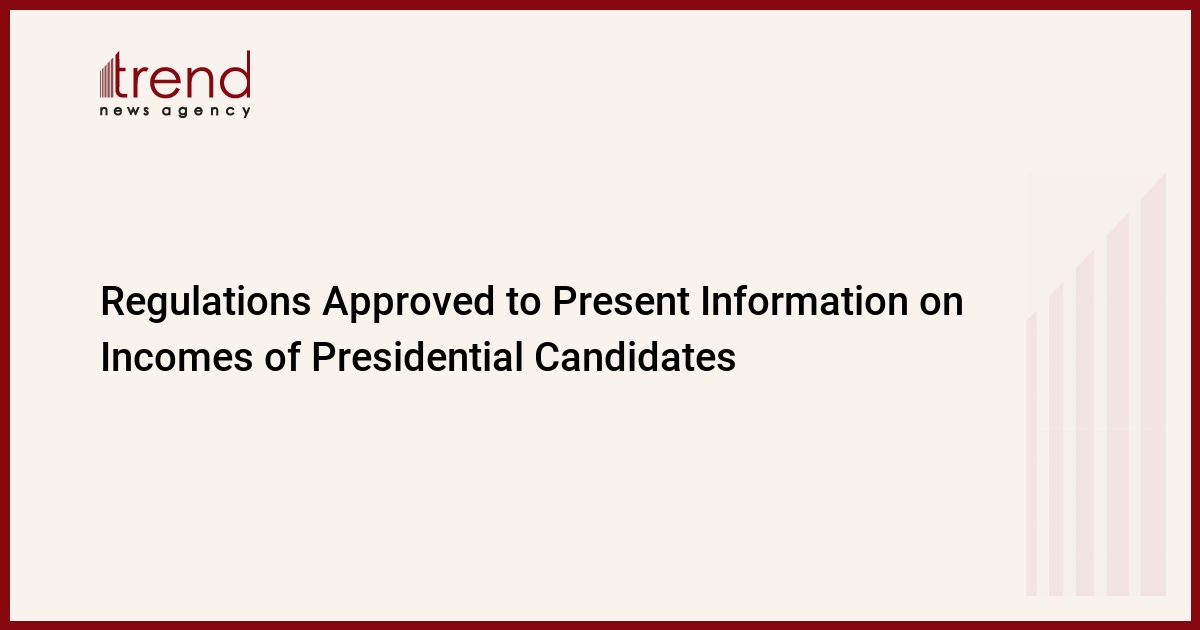 Azerbaijan, Baku, 11 July /corr. Trend E.Babayev / The Central Election Commission of Azerbaijan (CEC) approved regulations of presenting information regarding incomes, their sources and property of presidential candidates, a source at CEC told Trend on 11 July.