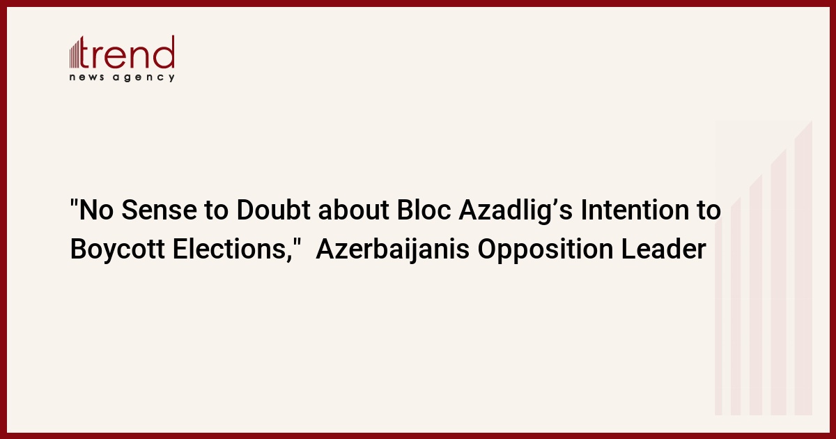 According to Karimli, bloc Azadlig is a union of political parties, not a supreme structure of political parties. "The bloc takes those decisions which are made y bloc's parties. So, after political parties male a decision, the decison becomes Azadlig's position. As to current issues, they are being disucssed at the Chairmanship Council. But decision on any important issue is taken by collegil bodies of each party. Elections were also discussed by collegial bodies of every party. The decision completely complies with our Charter," he said. |