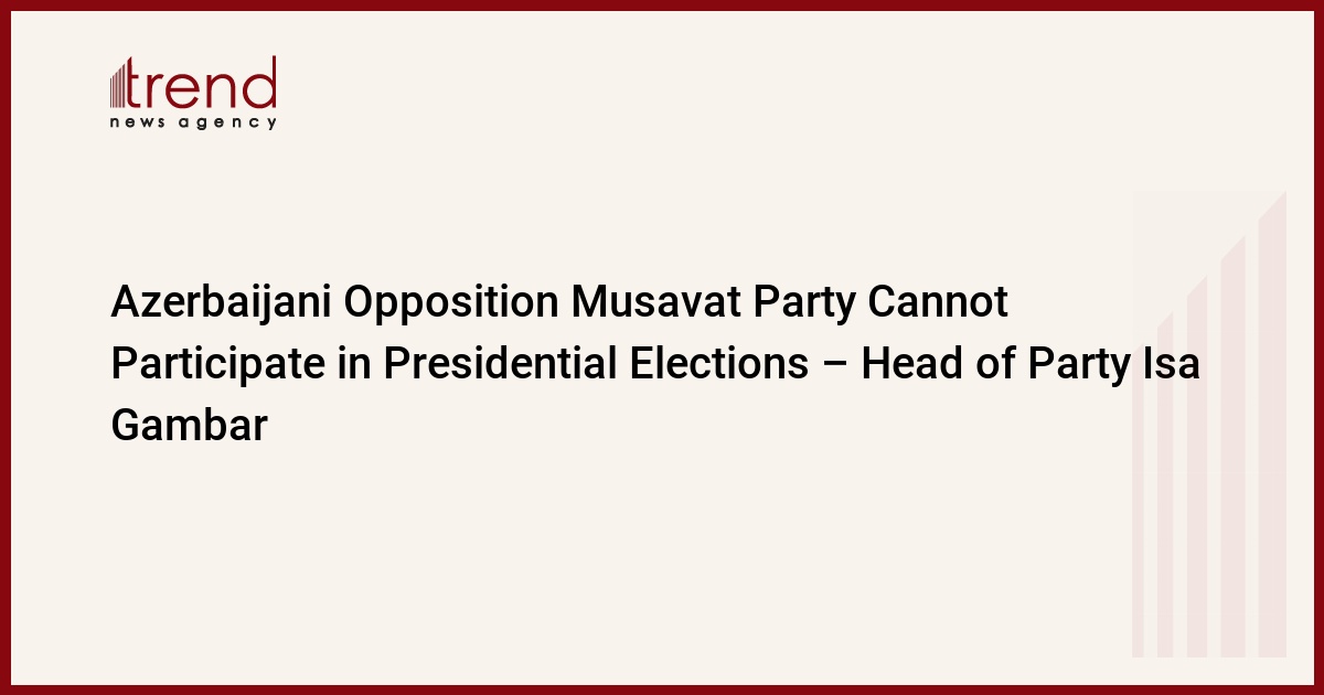 Azerbaijan, Baku, 2 August / Trend / The opposition Musavat party does not intend to participate in the presidential elections to be held on 15 October in 2008.