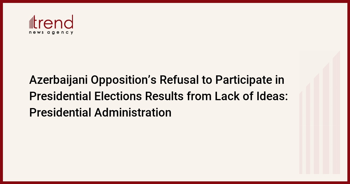 Azerbaijan, Baku, 4 August / Trend corr. E.Huseynli/ Several opposition group's refusal to participate in Azerbaijan's presidential elections results from lack of any ideas and views regarding political and economic development of the country and country's community, the head of the Political Analysis & Information at the Azerbaijani Presidential Administration Elnur Aslanov said to Trend , commenting on the recent decisions of country's opposition parties.