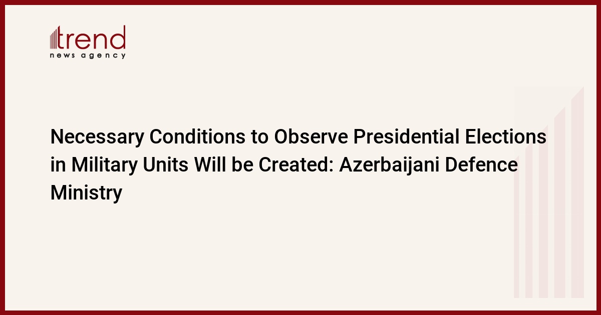Azerbaijan, Baku, 18 September / Trend corr. S.Kazimli / Under the Election Code of Azerbaijan, all the necessary conditions to observe the presidential elections on 15 October will be created in military units of the country. This was said by Eldar Sabiroglu, Head of the press-service of Azerbaijani Defence Ministry in the news-conference.