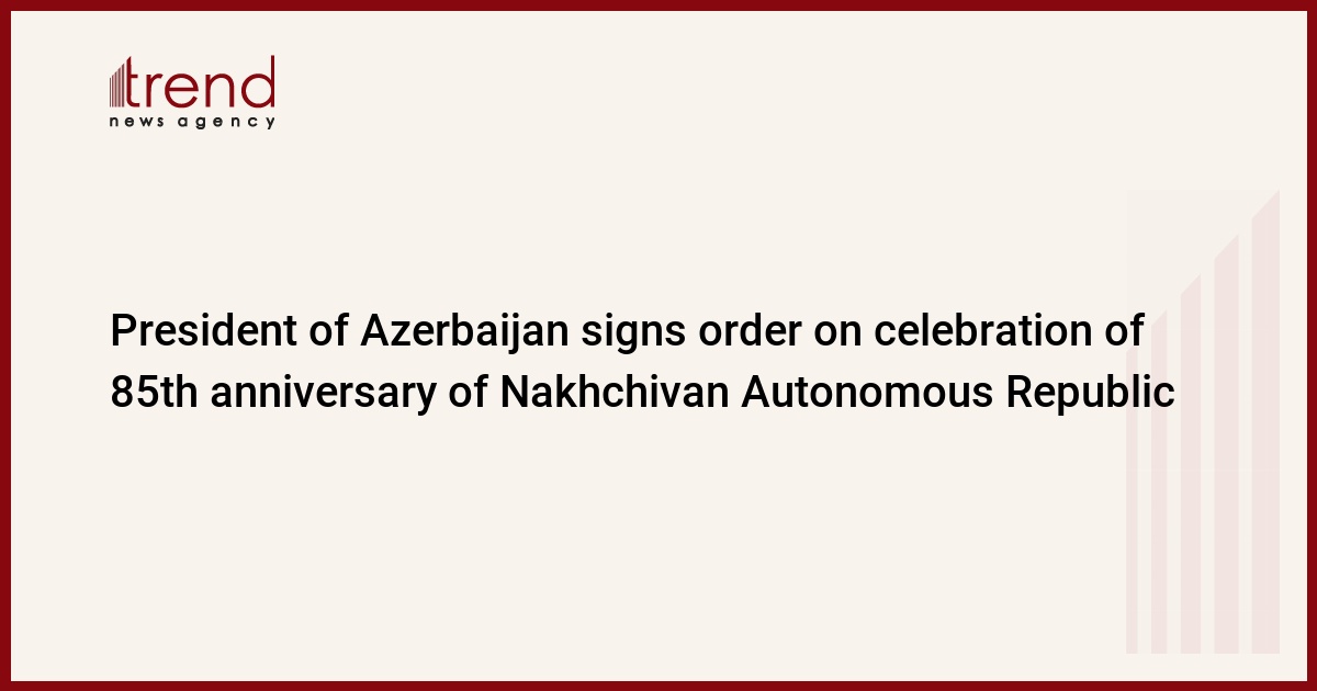 Azerbaijan, Baku, Feb. 6 / Trend / The President of Azerbaijan Ilham Aliyev signed an order on celebration of the 85th anniversary of Nakhchivan Autonomous Republic. Feb. 9 is the 85th anniversary of establishment of NAR.