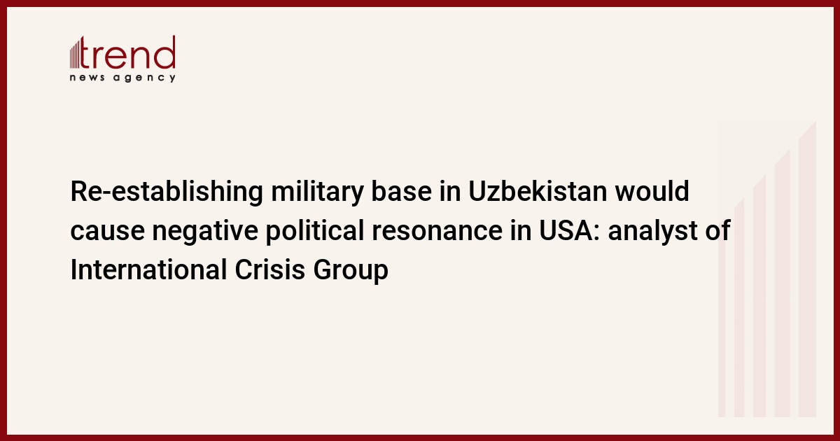 "Political resonance in America regarding opening of this base in Uzbekistan will be very negative because of the poor reputation of Uzbekistan in the sphere of human rights," Quinn-Judge, told Trend by telephone from Bishkek.