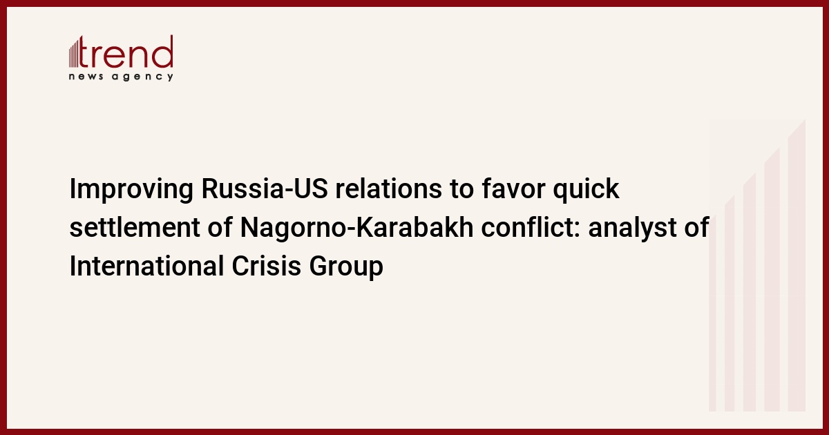 As Russia and the United States have been playing important roles supporting the resolution of the Nagorno-Karabakh conflict through the OSCE Minsk Group, the normalization of their relations can accelerate the process of settlement, Europe Program Director of International Crisis GroupSabine Freizer believes.