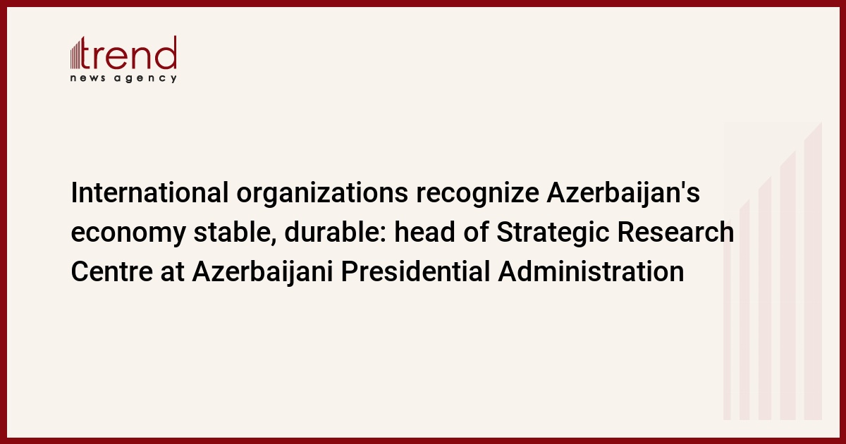 International organizations recognize Azerbaijan's economy stable and durable, head of the Strategic Research Centre at the Azerbaijani Presidential Administration said.