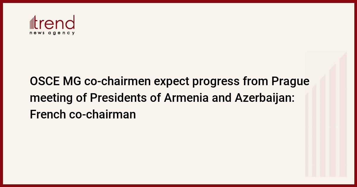 The co-chairmen of the OSCE Minsk Group are expecting progress on the Nagorno-Karabakh conflict settlement from the meeting of the Presidents of Armenia and Azerbaijan in Prague, French co-chairman Bernard Fassier told Trend on May 5.