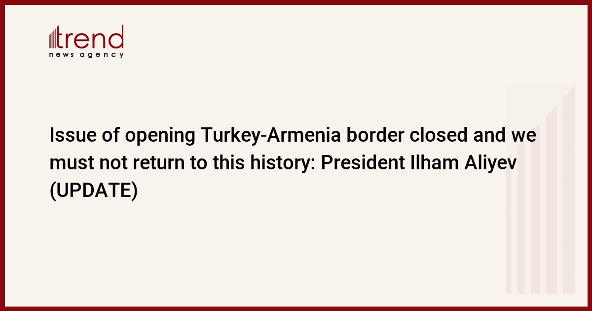 The issue of opening borders with Armenia was put an end after Turkish senior officials' unequivocal statements. I think it is already a history and we must not return to it, CNN TURK television channel quoted Azerbaijani President Ilham Aliyev as saying at a joint press conference with Turkish Prime Minister Recep Tayyip Erdogan on May 13.