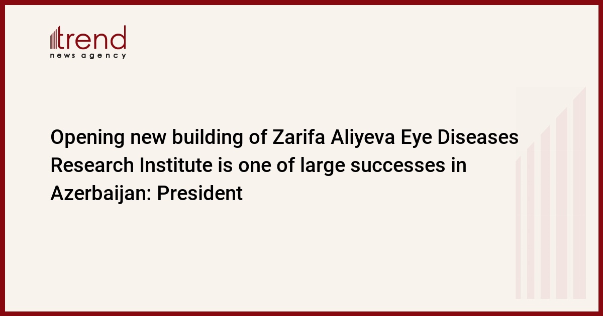 Opening new building of the Zarifa Aliyeva Eye Diseases Research Institute in Baku on May 22 is one of the large successes with regards to medicine in Azerbaijan, the President of Azerbaijan Ilham Aliyev said in the inauguration ceremony of the building, AzerTaj state news agency reported.