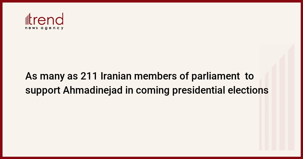 The statement by 211 of the 247 members of the Iranian parliament says they will support Mahmoud Ahmadinejad in the coming presidential elections, IRNA reported.