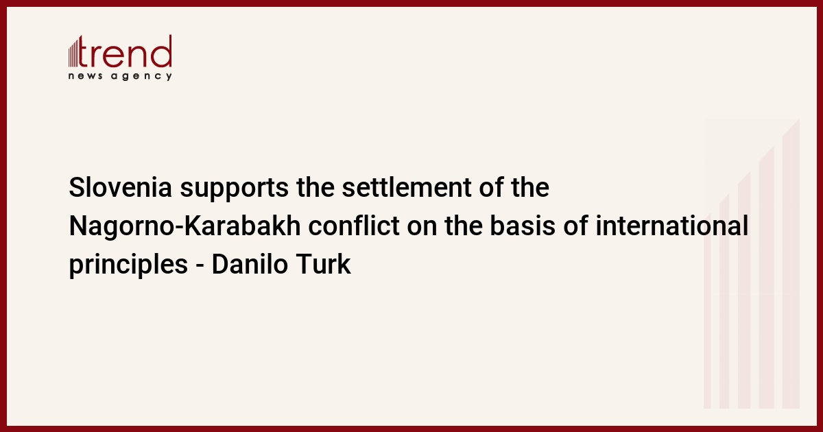 Slovenia supports the settlement of the Nagorno-Karabakh conflict on the basis of international principles, said on Monday in Baku, President of Slovenia Danilo Turk at the joint press conference with Azerbaijan President Ilham Aliyev. This information was reported by the state news agency AzerTAc.