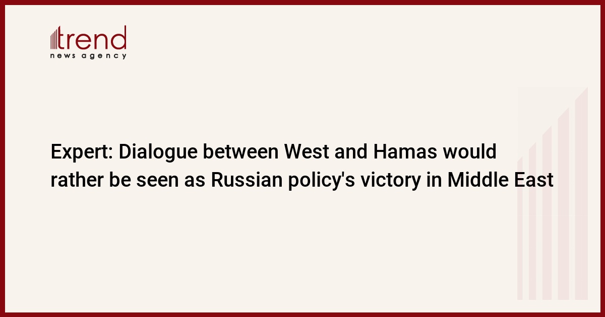 There are no signs that Moscow would oppose any dialogue between Hamas and the West. On the contrary, relations between Hamas and the West would rather be seen as a victory of the Russian policy in the Middle East, Researcher on Middle Eastern policy , Are Hovdenak, said.