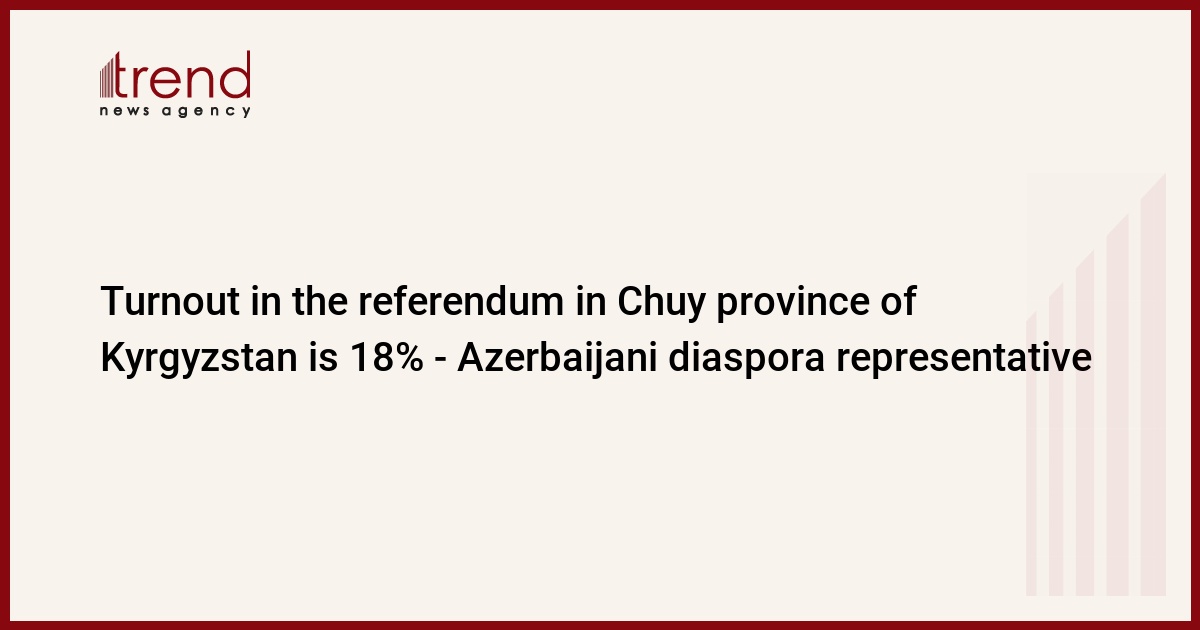 Turnout in the referendum on constitutional change in Kyrgyzstan's Chuy region, at the moment is 18%, the coordinator of the referendum on the region, Chairman of Public Association of Azerbaijanis living in Kyrgyzstan "Azeri" Akif Allahverdiyev told Trend by telephone on Sunday.