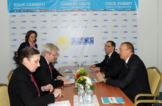 President Ilham Aliyev has met also Foreign Minister of Australia Kevin Rudd in Astana. Mr. Rudd said Australia is interested in developing bilateral, security, environmental and global cooperation with Azerbaijan. He also informed the President that Azerbaijani community exists in his country.