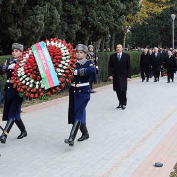 President Ilham Aliyev laid a wreath at the national leader`s grave. A military orchestra played Azerbaijan`s national anthem.